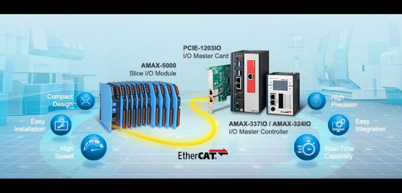 EtherCAT Busintegration erleichtert Systemausbau durch AMAX-5074 Koppler und Module