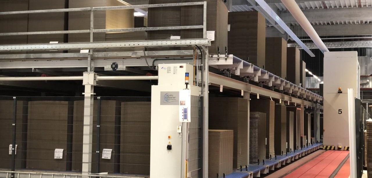 Mittels eines interaktiven Order-Systems setzen Bediener in Druckerei und Kaschiererei ihre Aufträge schnell auf den Weg. Ein automatisiertes Transportnetz managt selbstständig Transferwagen, Dreheinheit und Pufferlager, sodass gleichartige Warenpakete entsprechend ihrer Länge, Breite und Kartonbeschaffenheit Just-in-Time an die jeweiligen Maschinen geliefert werden. Palettenrotation, Drehbewegung der Ladegüter sowie die automatische Zufuhr in die Anlegerstationen erfolgen vollautomatisch, wodurch manuelle Eingriffe komplett entfallen und die Produktion unterbrechungsfrei läuft. Es protokolliert und meldet Abweichungen automatisch.